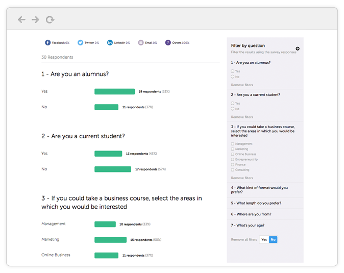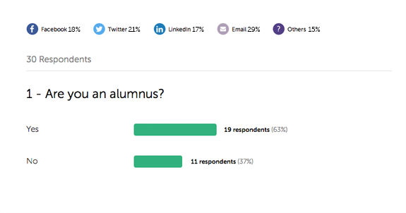 See, question by question, how many of your results came via Facebook, email, or another source. See which channels are performing best, and adjust your distribution strategy.