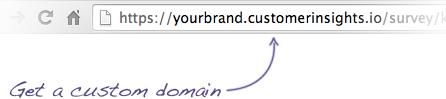 Customize the URL used to link to your survey. Instead of "innubu.com", you can put your own domain in the URL in the following format: yourbrand.customerinsights.io