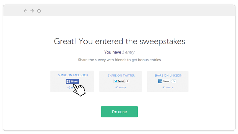 A built-in feature allows you to offer respondents more chances to win in your sweepstakes in exchange for sharing your survey via social media. Activate the feature with the flip of a switch!
